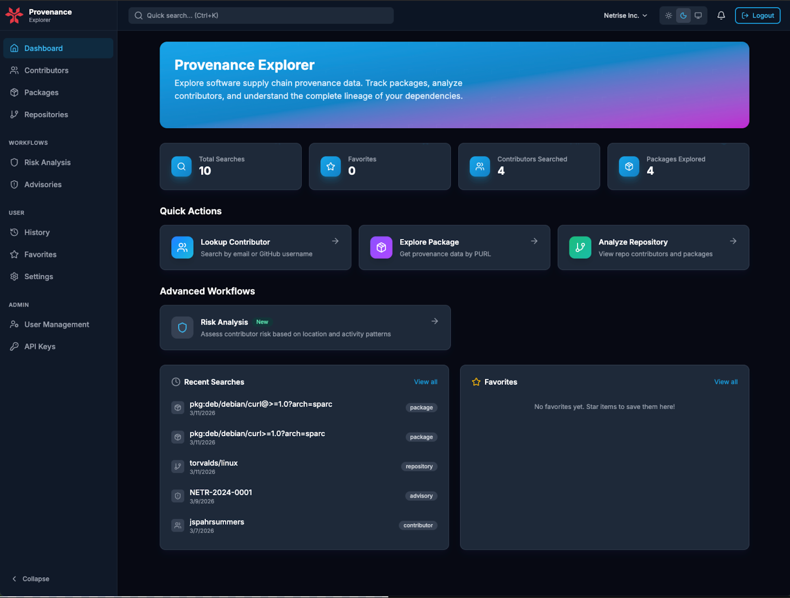 NetRise Provenance reveals who stands behind open-source components through organizational, contributor, and geographic signals, evaluates repository health, and shows how risk propagates. Importantly, it drives action, helping teams enforce consistent decisions across builds, procurement, and incident response through policies tailored to their risk appetite.