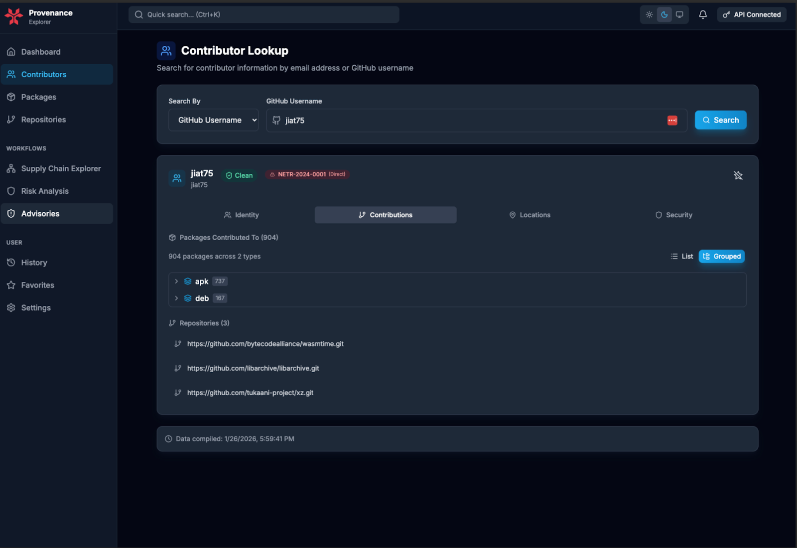 Software risk often hides behind mirrors, forks, transitive dependencies, and unclear stewardship. NetRise Provenance traces packages back to canonical source repositories and links them to maintainers, organizations, and geographic footprint so teams can verify true software origin and understand the stewardship behind the software they depend on.