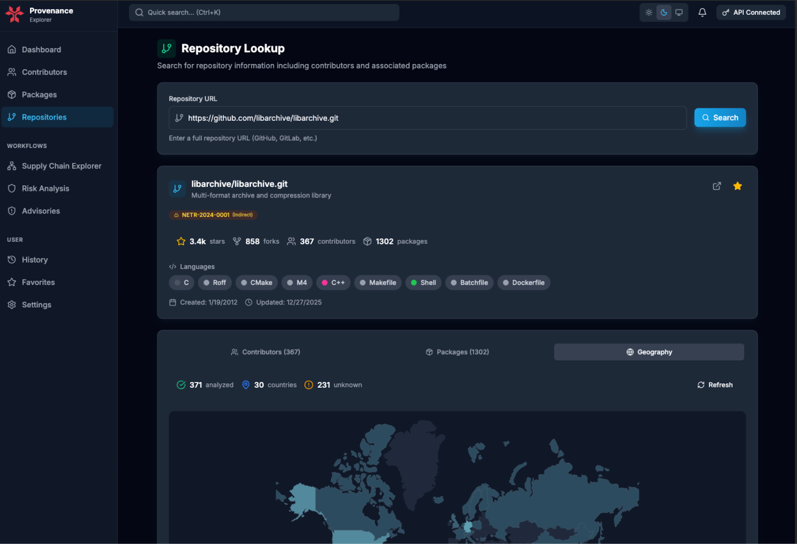 CISOs and third-party risk teams can use NetRise Provenance to assess vendor software with independent evidence about contributors, organizations, geographic exposure, and repository health.