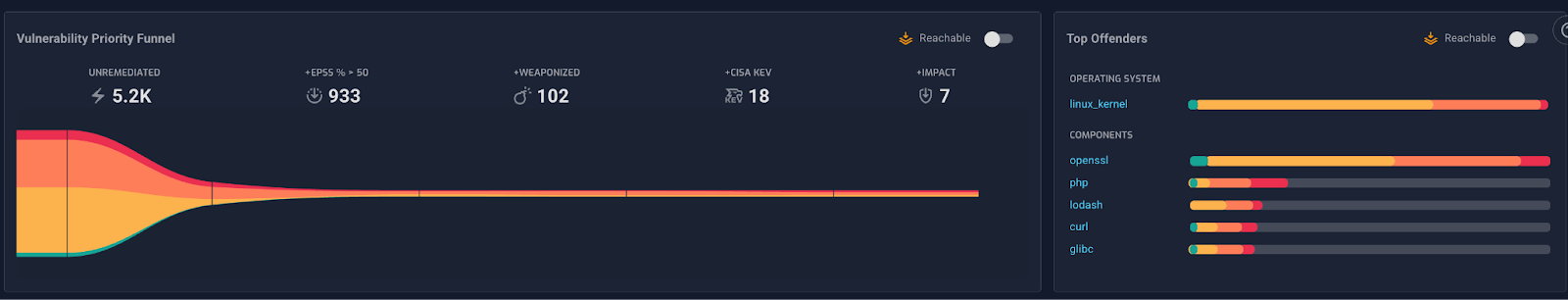 Instead of treating inherited exposure as a vague or unbounded problem, NetRise narrows the evidence to what’s highest priority: known exploited, weaponized, and reachable issues. This is where binary evidence becomes operational—it turns broad exposure (often thousands of inherited vulnerabilities) into a prioritized set of items that can be tracked, owned, and reflected in residual risk.